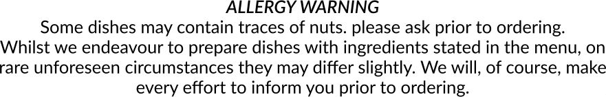 Dishes may contain nuts and other allergens. Please ask before ordering